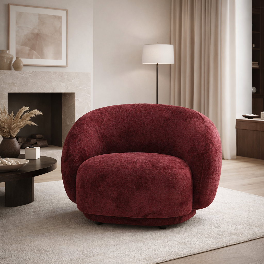 The Cloud armchair combines sculptural beauty with exceptional comfort. Wrapped in soft bouclé fabric, its rounded, armless shape evokes the gentle contours of a cloud — soft, inviting, and effortlessly stylish.