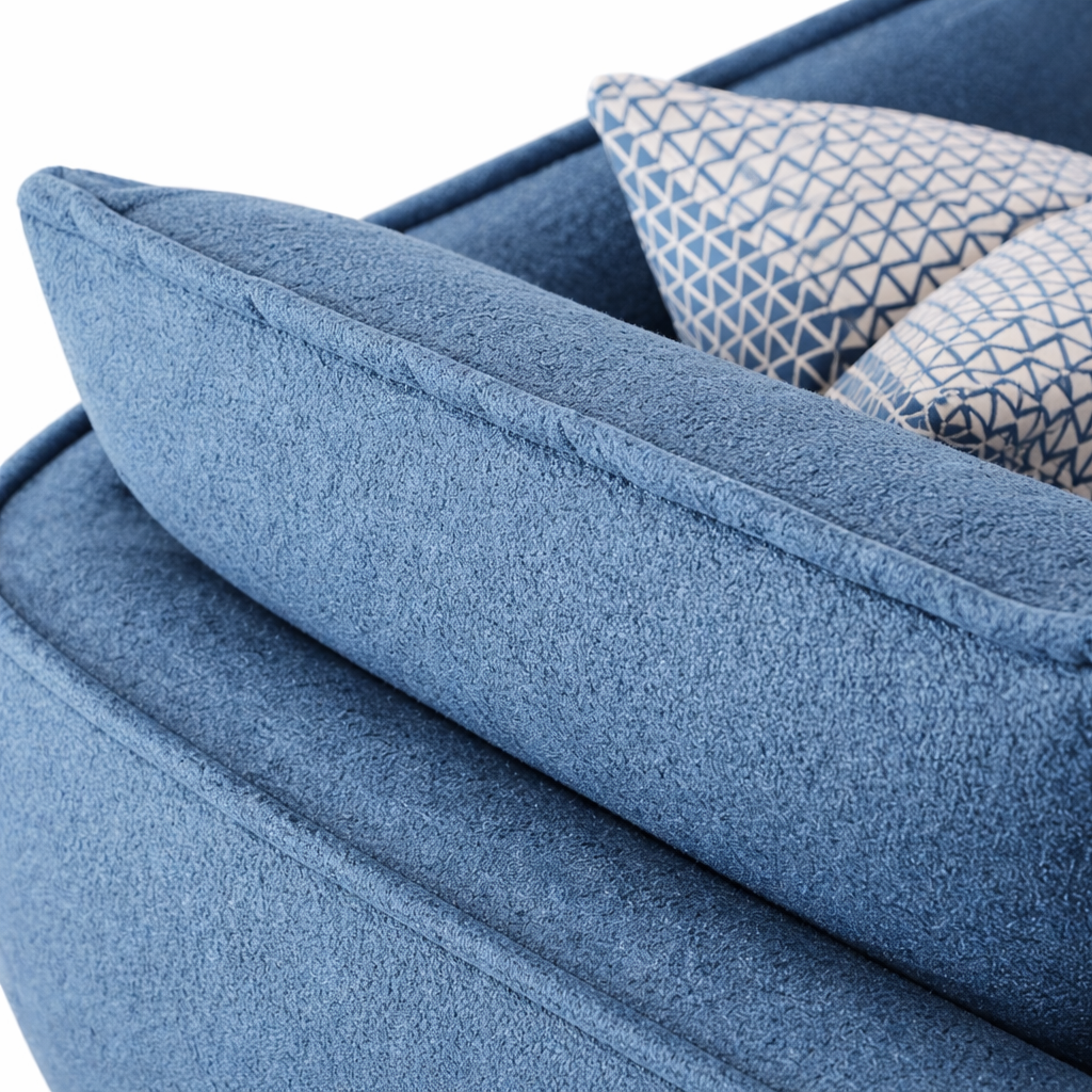 Make an impression with Cobalt, where refined design meets everyday comfort. Wrapped in a rich bouclé fabric in deep cobalt blue, this three-seater sofa strikes the perfect balance between modern minimalism and deep, cozy seating. Clean lines, gently rounded armrests, and generously padded cushions create an inviting sense of relaxation with style.