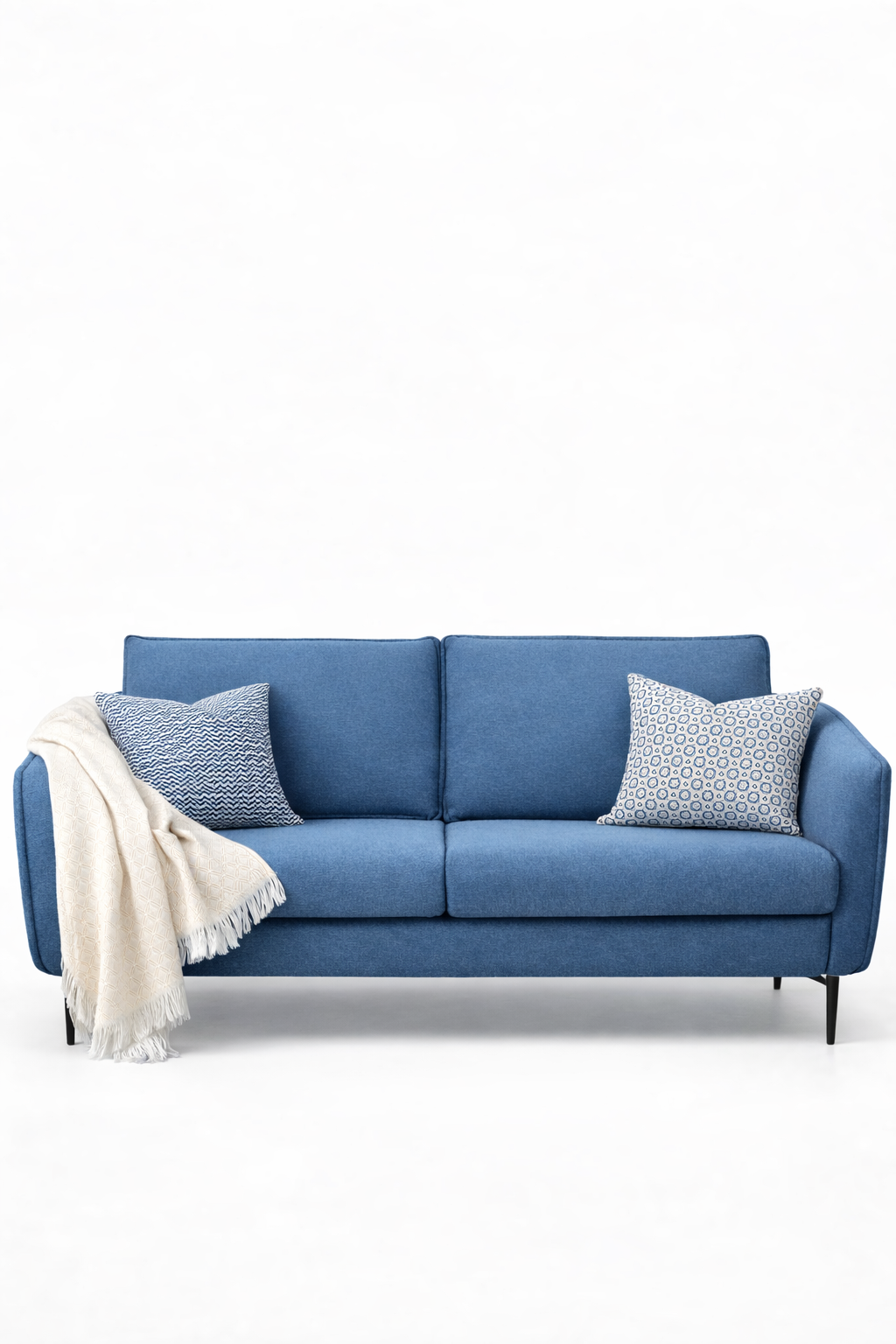 Slim black metal legs give the sofa a light, elevated silhouette that looks beautiful in both spacious and compact interiors. Cobalt brings texture, color, and personality to any living space.