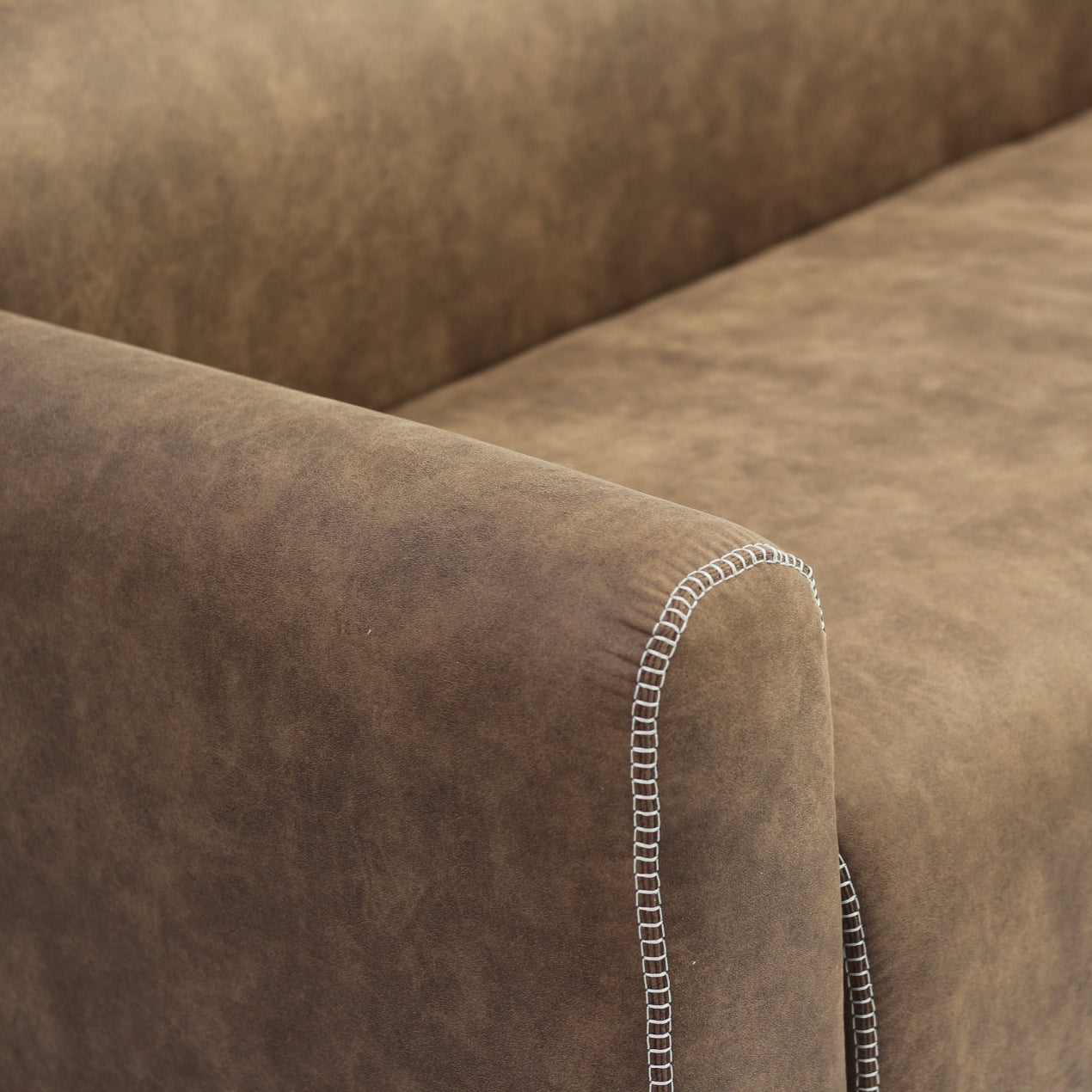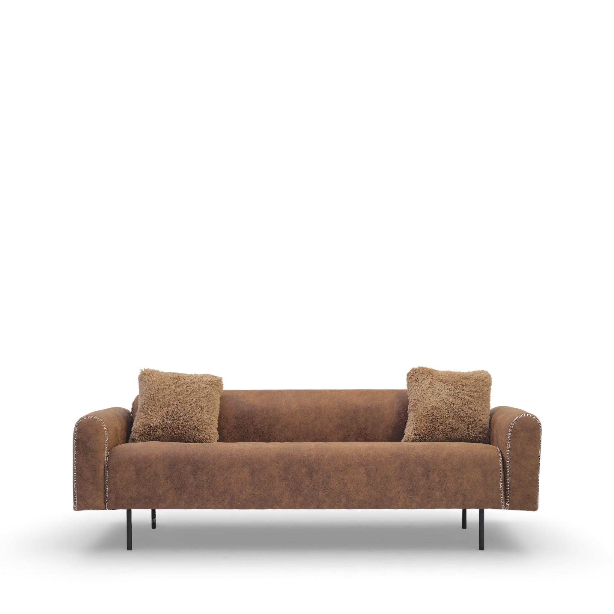 Corvyn brings a grounded, contemporary presence to the living space. Upholstered in smooth eco leather, this sofa features a clean, structured silhouette with broad, supportive cushions and a warm, timeless tone — creating a modern look that feels refined yet inviting.