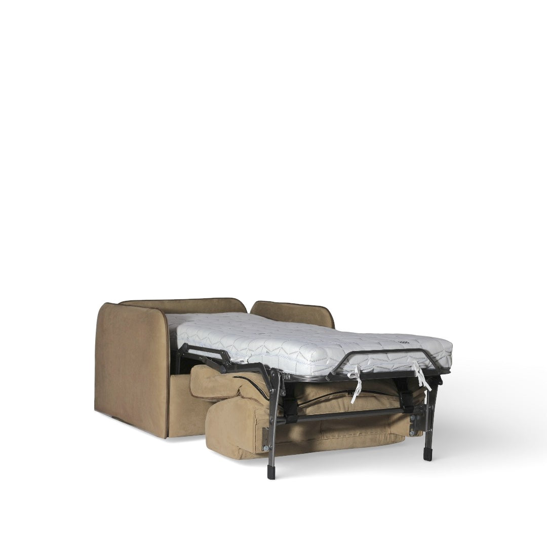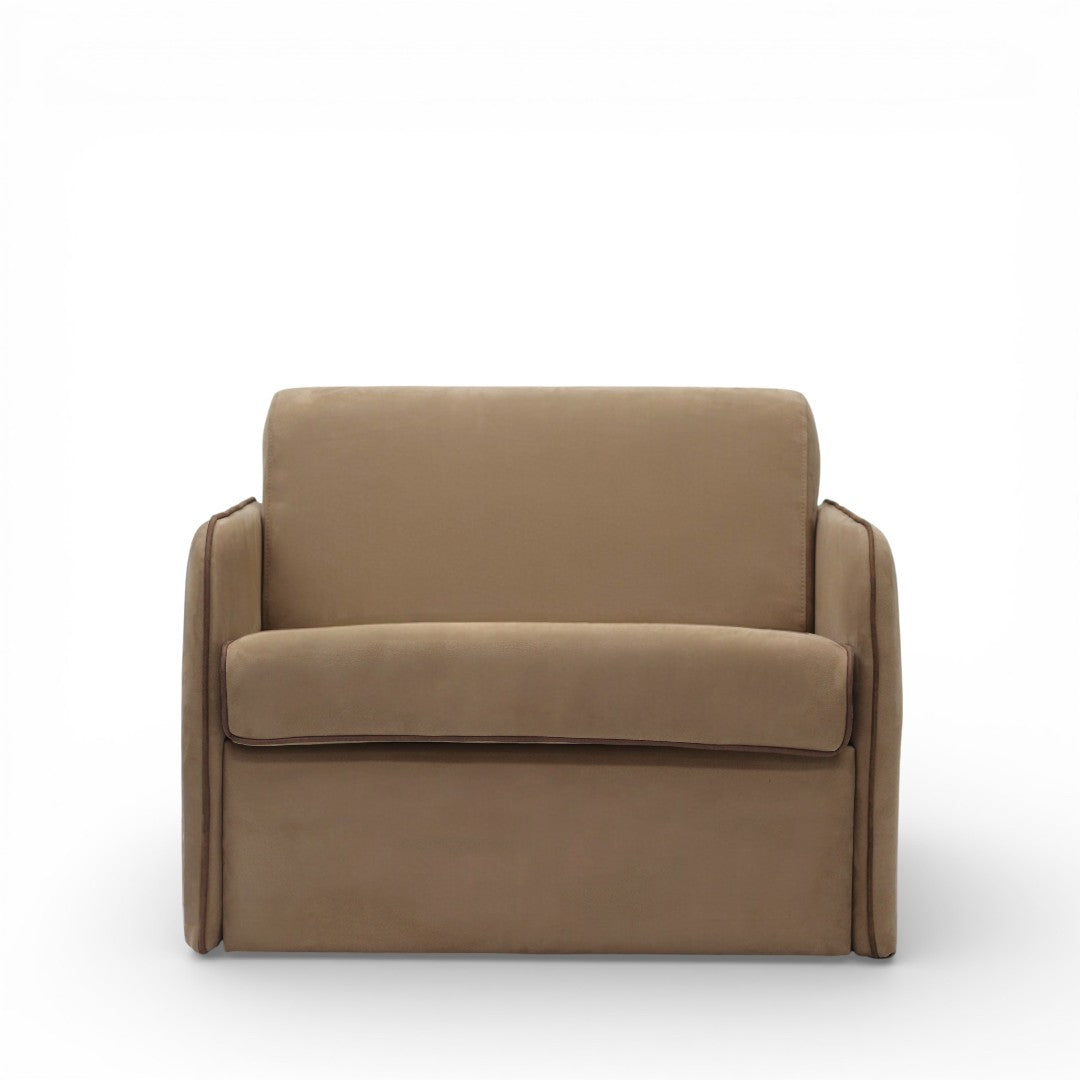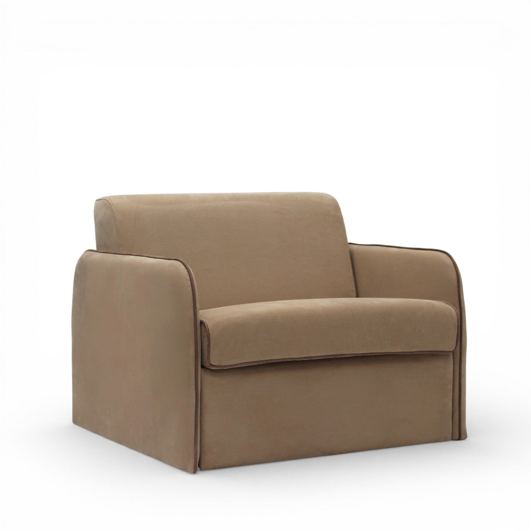 Eira brings a calm, understated elegance to the living space — a compact sleeper armchair designed for modern homes where comfort and function matter equally. Upholstered in a soft-touch beige fabric with clean piping details, Eira has a smooth, minimal silhouette that feels warm, refined, and effortlessly easy to style.