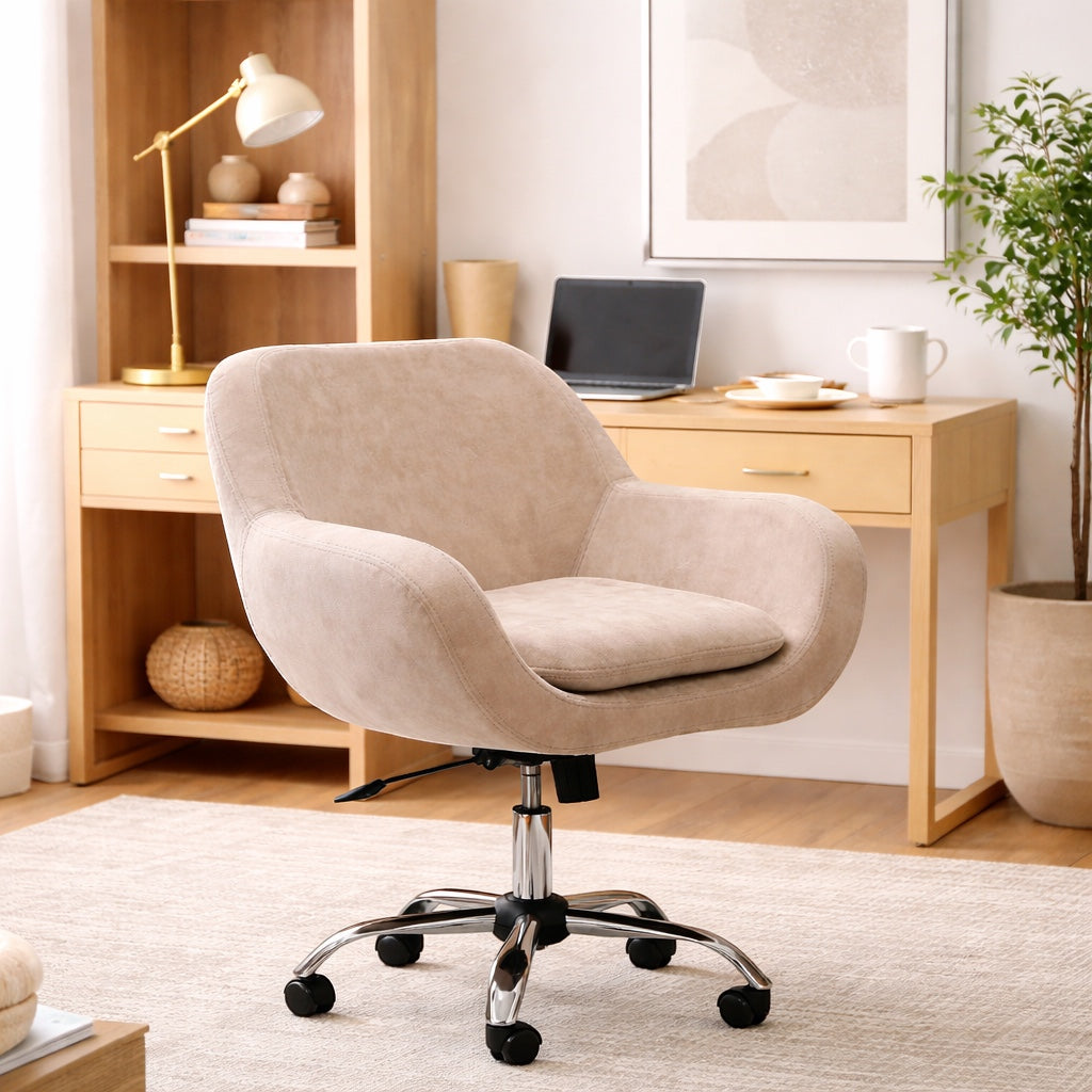 Milan embodies modern chic with its sculpted silhouette, generous proportions, and refined beige upholstery. Wider than the average office chair, Milan offers an elevated sense of space and comfort - allowing you to sit freely without feeling confined. The softly curved backrest and integrated armrests gently embrace the body, creating a lounge-like experience while maintaining a clean, professional presence.