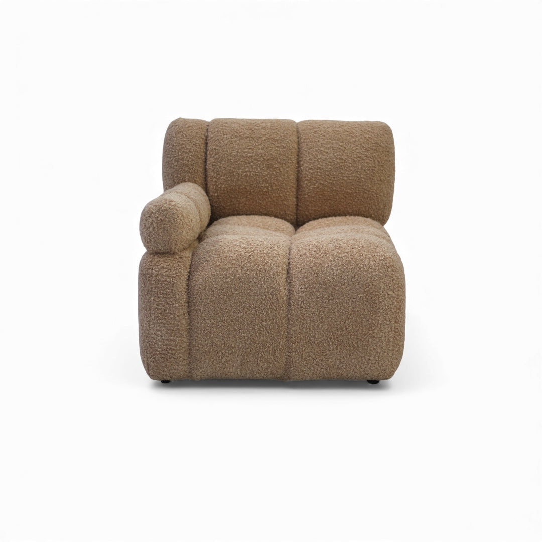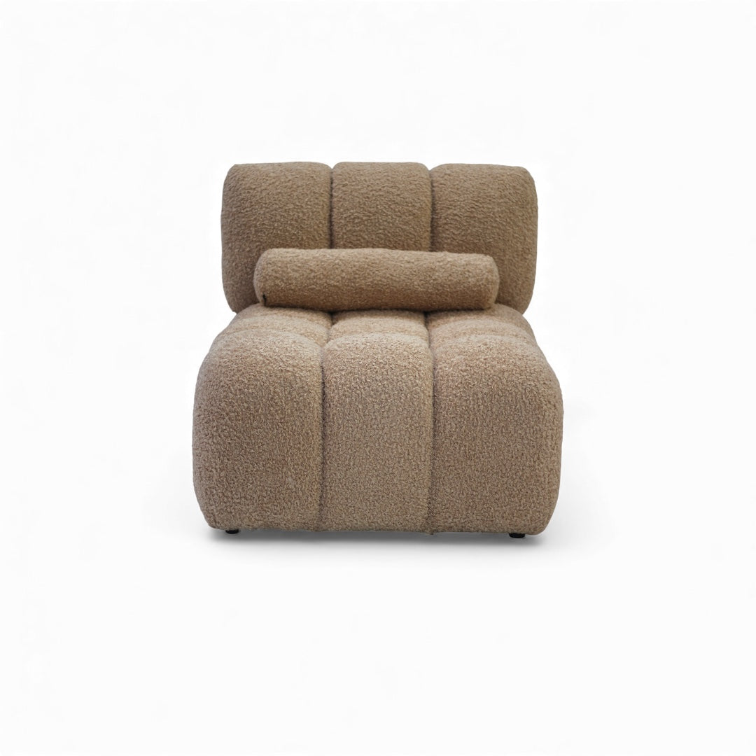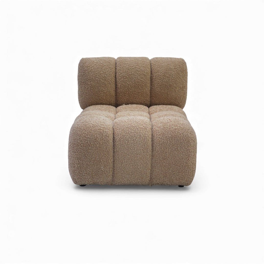 Moducube brings bold comfort and clean modular design into one statement-making sofa. Upholstered in soft, textured bouclé in a warm taupe tone, it features a plush, cube-like silhouette with generous channeling and deep cushioning — made for lounging, stretching out, and everyday relaxation.