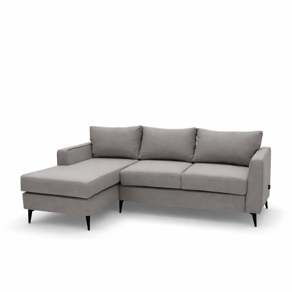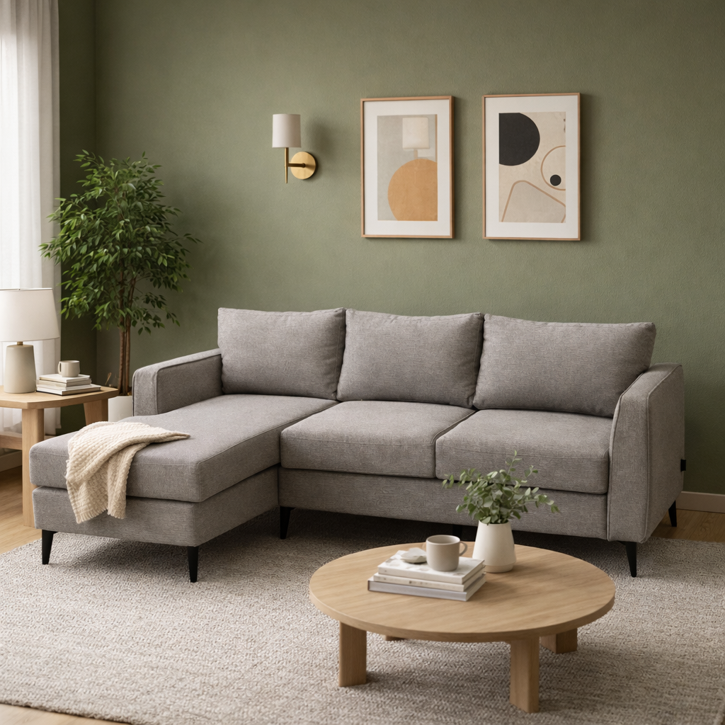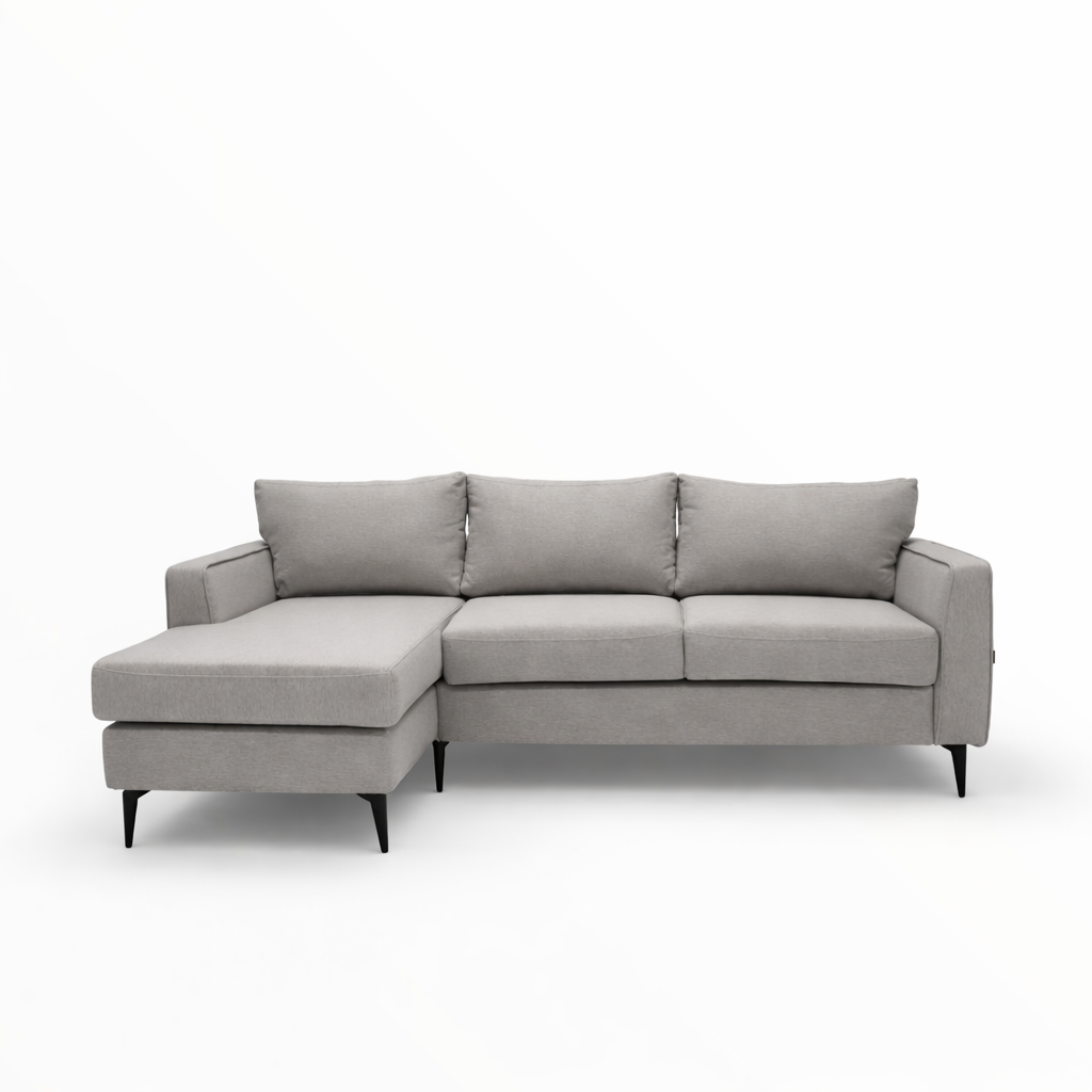 Transform your living space with Taylor, a refined L-shaped sofa designed for both comfort and clean, contemporary style. Its balanced proportions, structured silhouette, and softly textured upholstery create a welcoming presence while maintaining a polished, modern look. Elevated on slim black legs, Taylor feels light and airy, making it a perfect fit for both compact apartments and spacious living rooms.