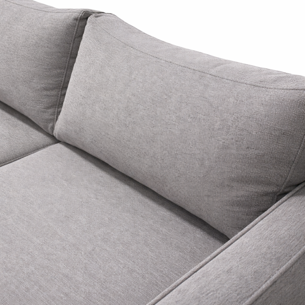 The fixed L-shaped configuration offers a cohesive, streamlined design without modular adjustments — ideal for those who want a well-defined layout with effortless functionality. The chaise extension provides generous space to stretch out and relax, while the supportive back cushions ensure everyday comfort without compromising style.
